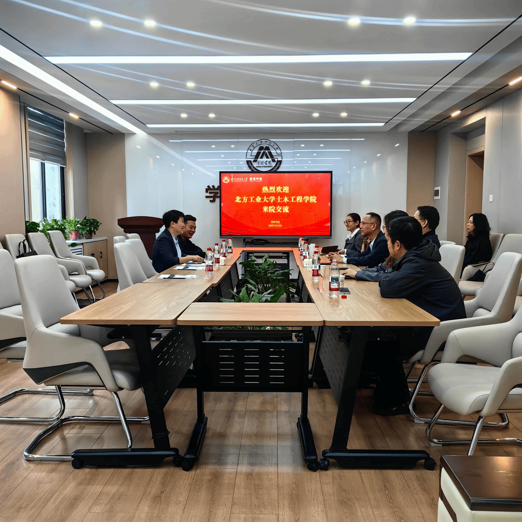 9月19日下午,北方工业大学土木工程学院院长纪颖波、设备与工程管理系主任张召冉一行来我院调研,双方在西楼206会议室举行座谈会。我院院长兰峰,副院长张新生、李玲燕及相关负责同志参加。
