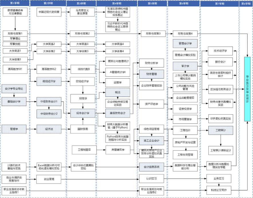 9 | 专业方向课程 | 施工企业会计 | 2.0 |