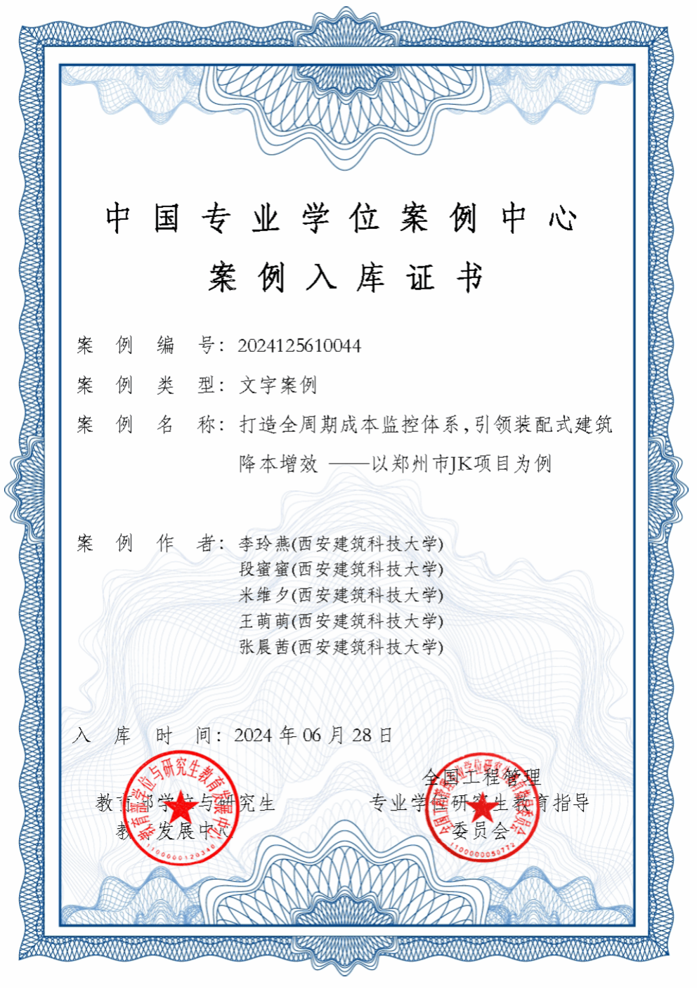 我院李玲燕老师团队组织撰写的教学案例“打造全周期成本监控体系,引领装配式建筑降本增效——以郑州市JK项目为例”入选中国专业学位案例中心MEM案例库。