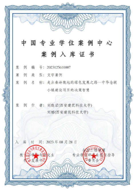 我院刘晓君教授和研究生刘娜同学基于陕西省洛南县中华仓颉小镇真实建设项目撰写的系列教学案例“走出秦岭腹地的绿色发展之路:中华仓颉小镇建设项目的决策智慧”入选中国专业学位案例中心MEM案例库。