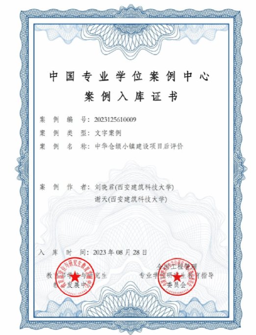 我院刘晓君教授和研究生谢天基于陕西省洛南县中华仓颉小镇真实建设项目撰写的系列教学案例“中华仓颉小镇建设项目后评价”入选中国专业学位案例中心MEM案例库。